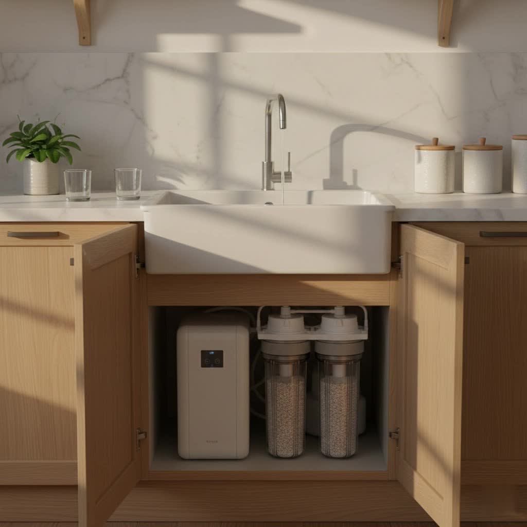 The under-sink system typically gets the most attention due to its direct impact on daily drinking and cooking water quality.